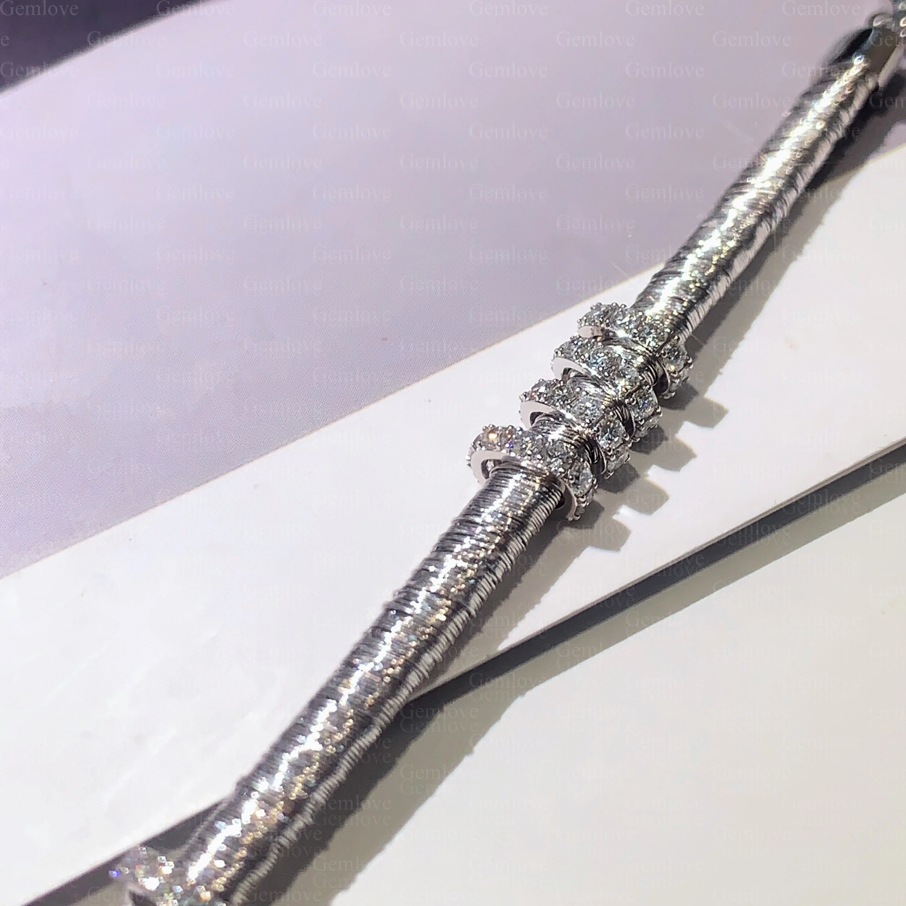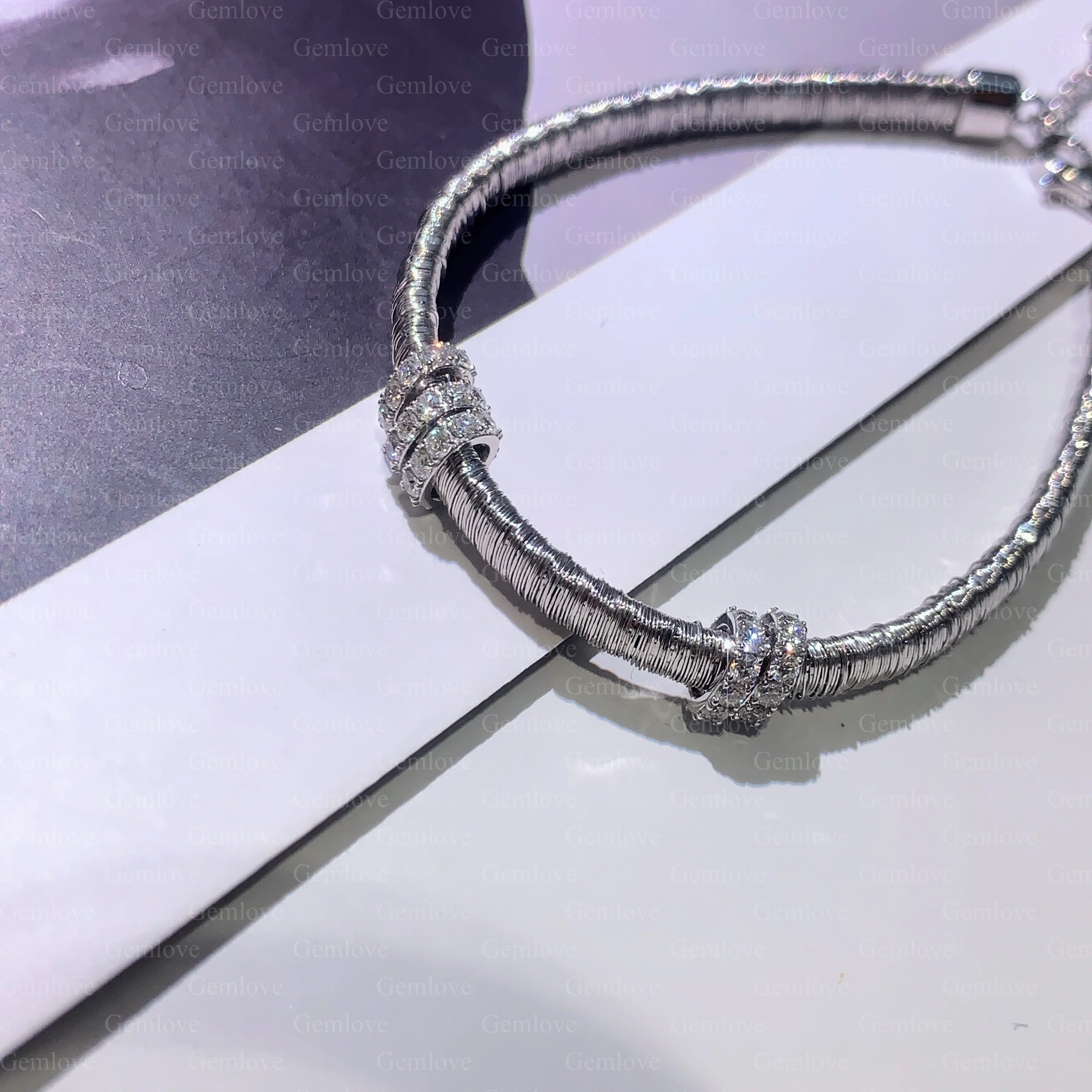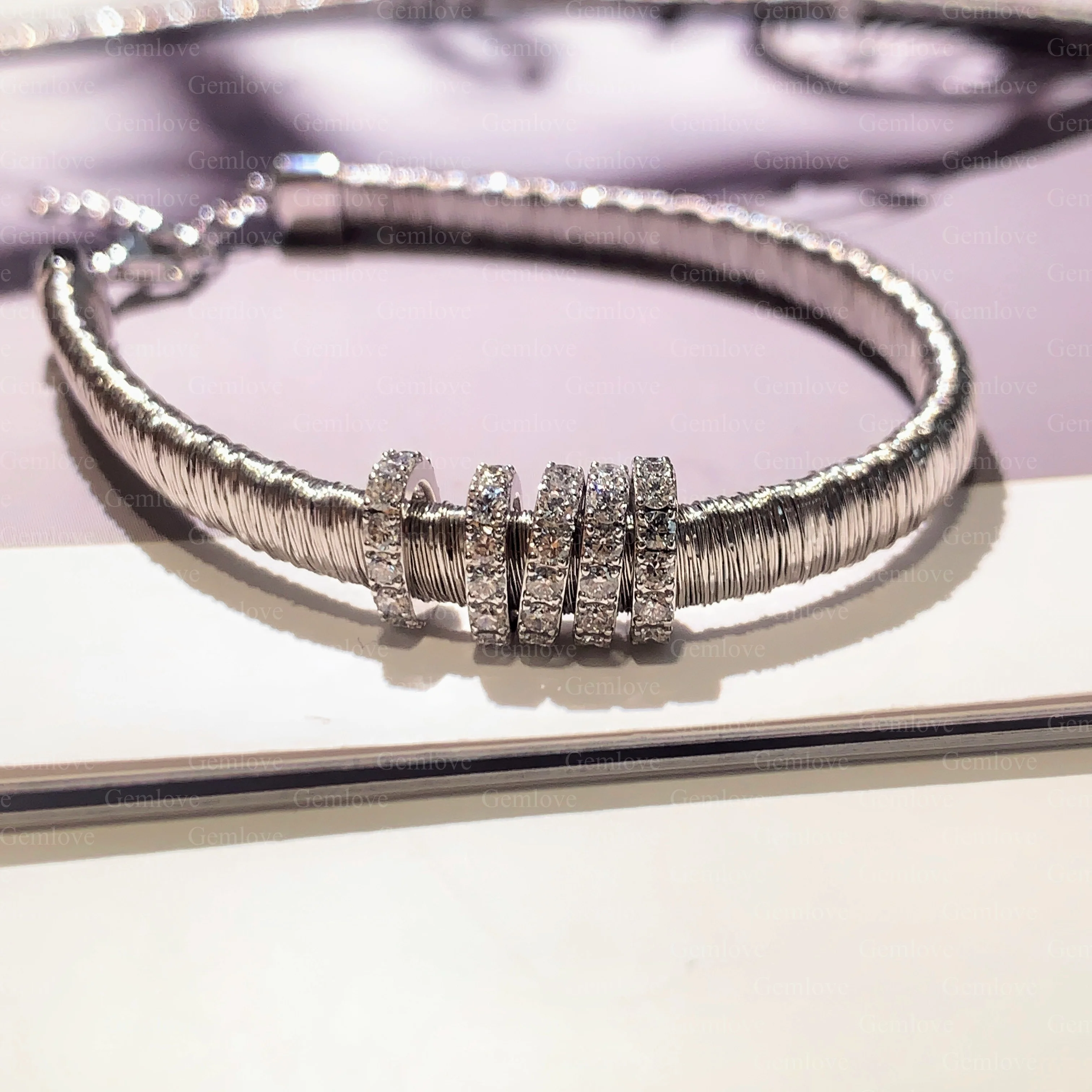 GIA-certified laboratory-grown 1.485 carat round diamond, 18 carat white gold woven ladies' bracelet, suitable for party wear.